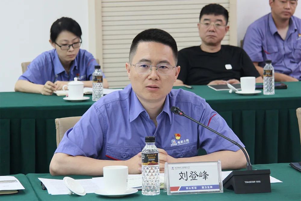 成都天翔环境股份有限公司、山东豪迈机械科技股份有限公司、重庆水轮机厂有限责任公司等31家供应商44名代表,哈电电机质量体系管理办公室、采购部、智能制造工艺部、质量检测部及立菱电机公司相关人员现场参会。天津市天发重型水电设备制造有限公司、苏州巨能发电配套设备有限公司等7家供应商以视频形式参会。