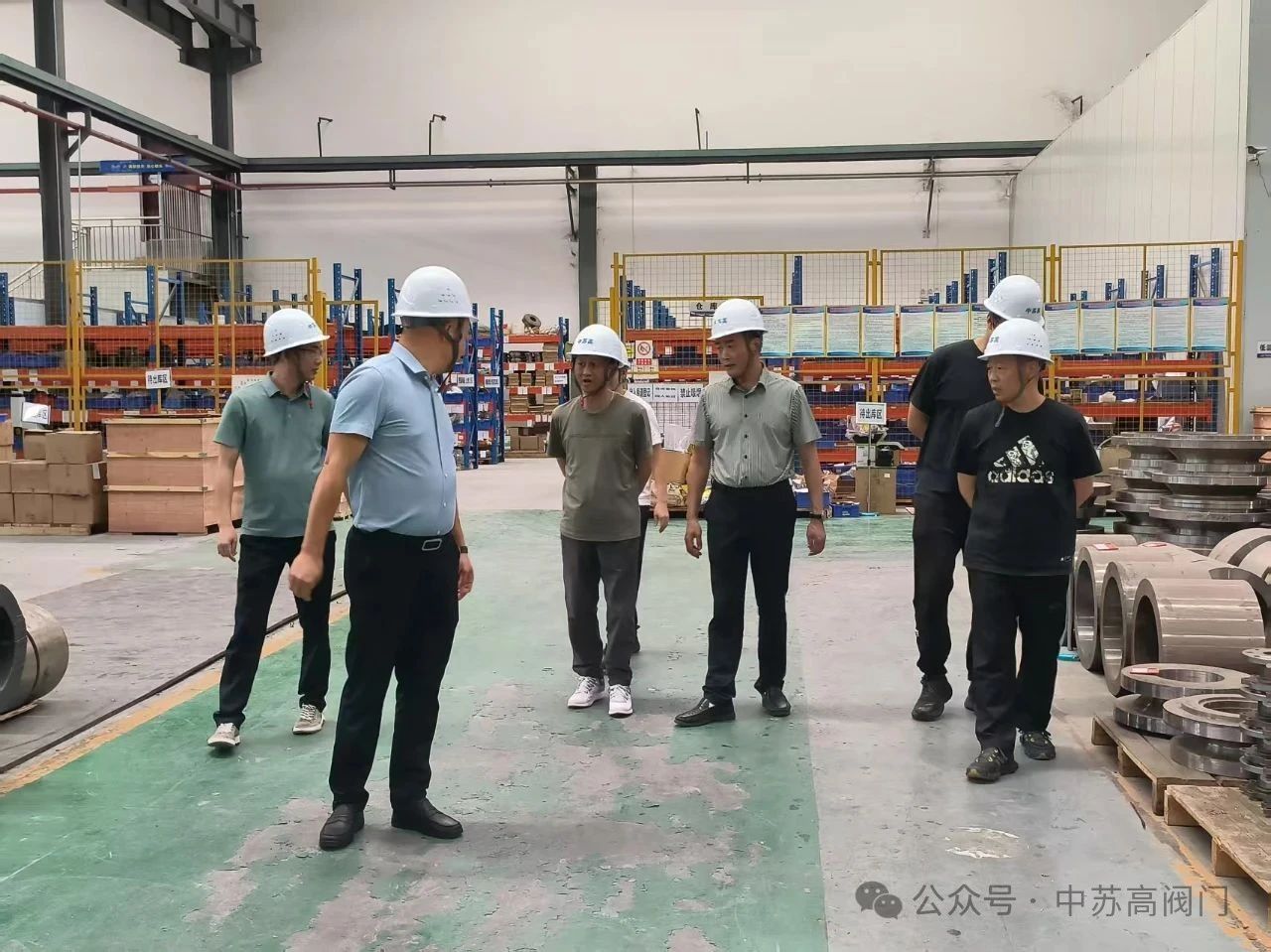 中苏高(重庆)阀门科技有限公司对扬子江乙酰化工公司考察人员的到来表示了热烈的欢迎。中苏高董事长洪朝齐、总经理洪培直、运营副总洪吉贵亲自陪同考察人员参观了公司的生产车间,让考察人员直观感受到了中苏高公司的生产环境和设备水平。