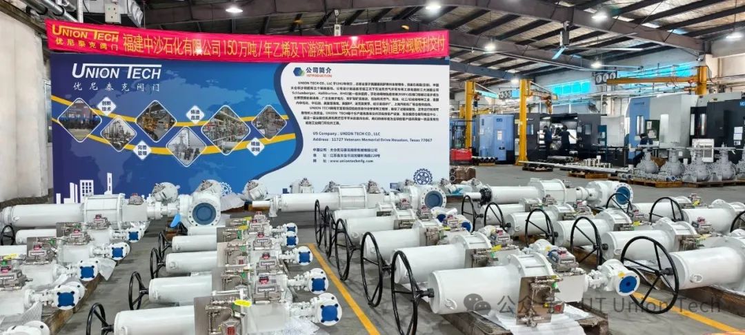 2025年7月,优尼泰克(Union Tech)公司太仓工厂成批量交货福建中沙石化150 万吨/年乙烯及下游深加工联合体项目部分轨道球阀,标志着优尼泰克阀门在此类装置领域实现又一次突破,为后续深耕高端阀门市场奠定了关键基础。此次交货的产品主要为:提升杆式轨道球阀阀门品类(RSBV),尺寸范围涵盖DN50至DN250,压力等级覆盖150LB至 600LB,可全面满足业主的实际使用需求。
