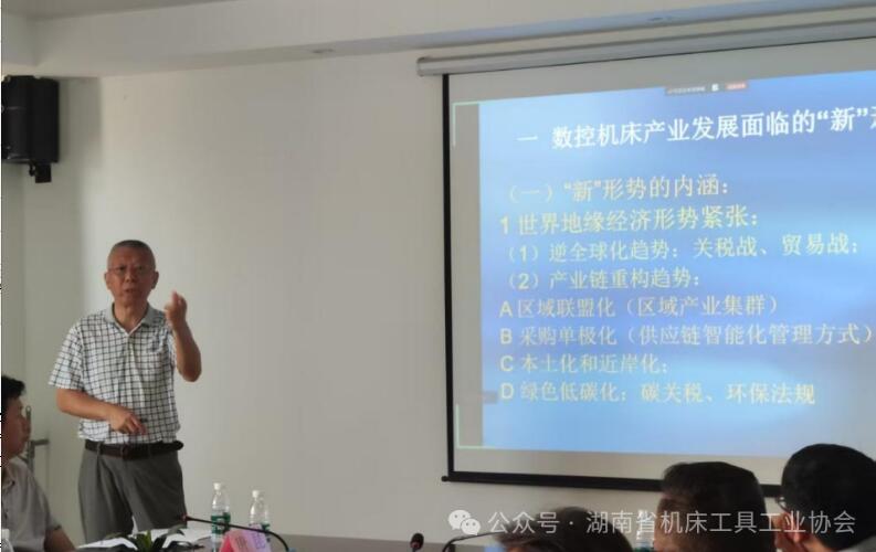 随后,何建国名誉理事长围绕 “数控机床企业面临的新形势和新任务” 作主题分享,深入分析国内市场规模、行业发展新形势、企业面临的抉择难题,以及 “十五五” 期间的机遇与挑战。