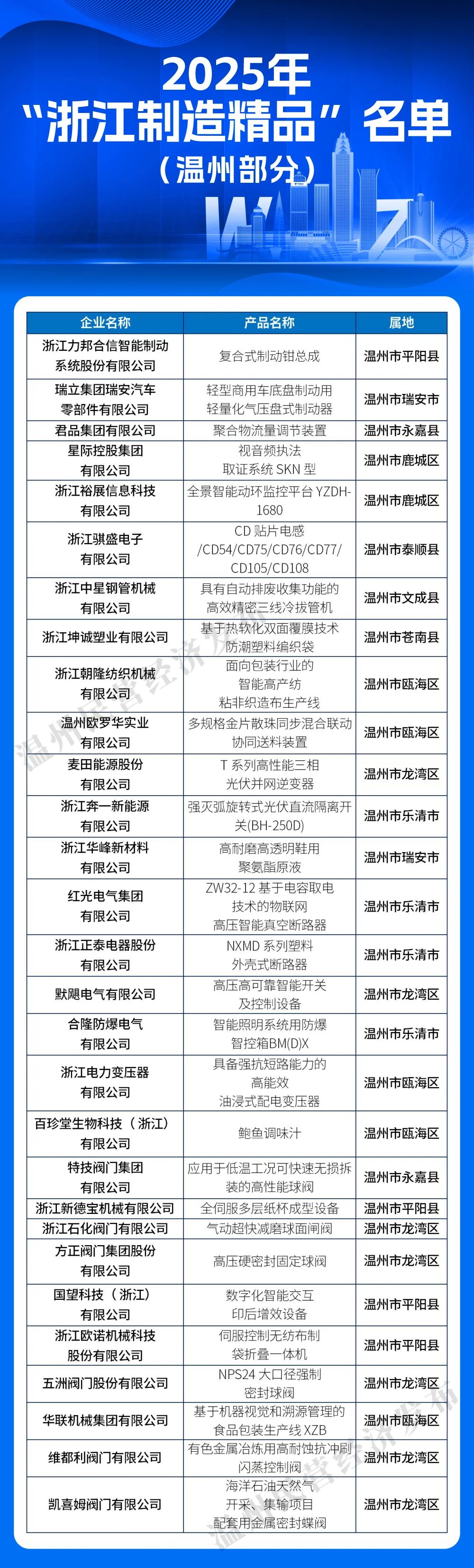 > 温州29项!2025年“浙江制造精品”名单公布