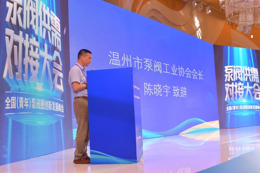 随后,温州市泵阀工业协会会长陈晓宇致辞,他提到,温州泵阀产业正从“星罗棋布”走向“顶天立地”。2024年温州泵阀全产业链产值破 800 亿元,现在温州泵阀产品不再是不被认可的“温州货”,而是挺进核电、航天、深海等领域的大国重器。并且致辞中陈晓宇会长还强调我会25周年庆典计划,号召现场同仁金秋十月来温一同回顾温州泵阀的来时路,也见证温州泵阀的再次飞跃。