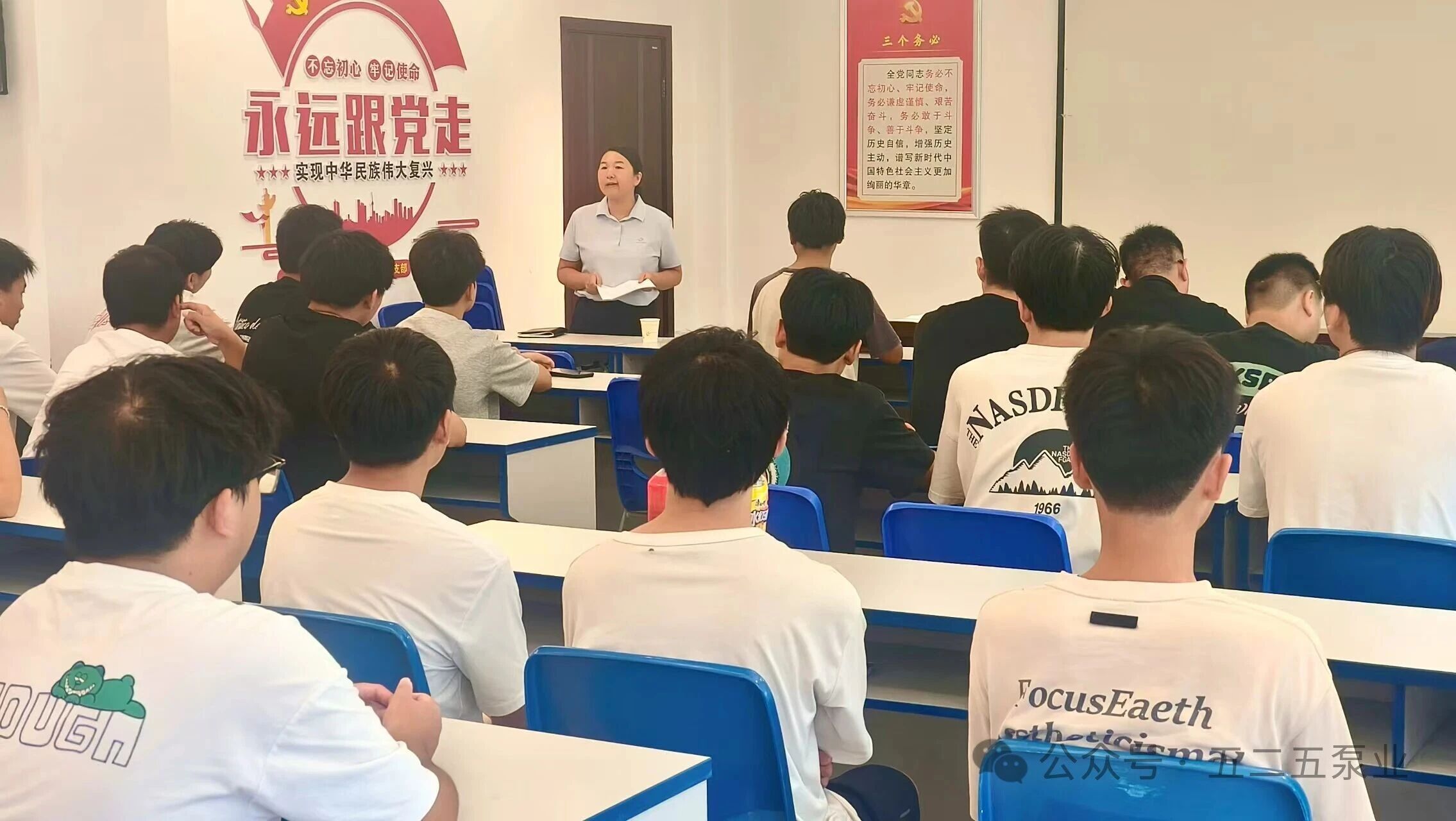这群朝气蓬勃的青年是在8月20日正式加入泵业公司大家庭的。入职当天,行政人事部为学员提供了全方位的保障,高效办理入职手续,贴心安排衣食住行,组织职业健康体检,使学员从进入企业的第一天就感受到家的温暖。8月21日至27日期间,学员完成了系统的公司级培训,从企业文化到规章制度的学习,从体系建设到产线岗位具体操作要求,这一系列的培训帮助学员快速完成了从学生到“准职业人”的角色转变,对7500吨/年绿色智能铸造项目的投产提供了重要的人才保障。