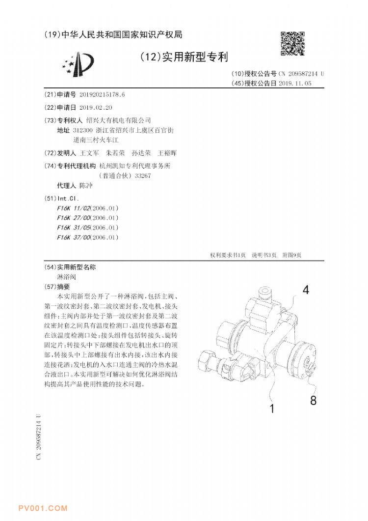 专利分类号:F16K11/02(2006.01)I