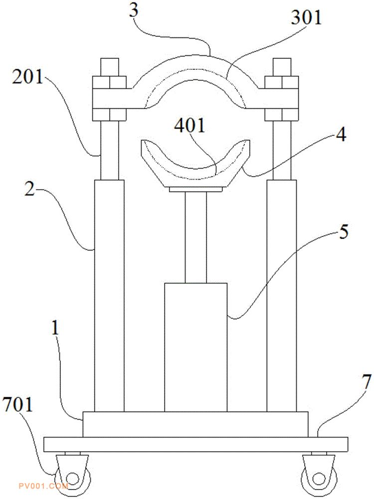 专利摘要:公开(公告)日:2019-11-05摘要:本申请公开一种泵口法兰快速夹紧装置,包括:底座和升降装置,底座上设置有两个立柱,两个立柱之间连接有上抱箍;升降装置设置在两个立柱之间,升降装置的顶端设置有下抱箍,升降装置的下端连接在底座上;其中,上抱箍的内侧设置与上凹槽,下抱箍的内侧设置有...