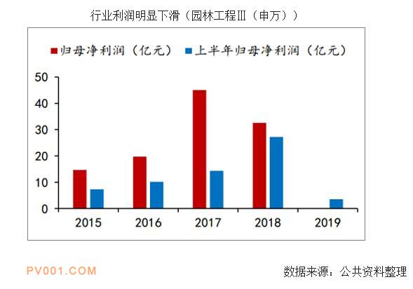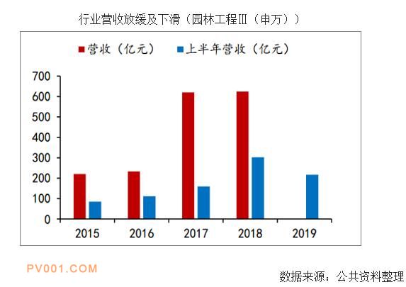 园林行业面临重新洗牌的机会。以园林工程Ⅲ(申万)为例,18年行业实现营收624亿元与17年基本持平,19年上半年营收216亿元,同比下降约29%,而利润在17年达到高点,18年同比下降27%至33亿元,19年上半年同比下降87%至4亿元,行业整体表现较差,园林行业面临重新洗牌的机会。
