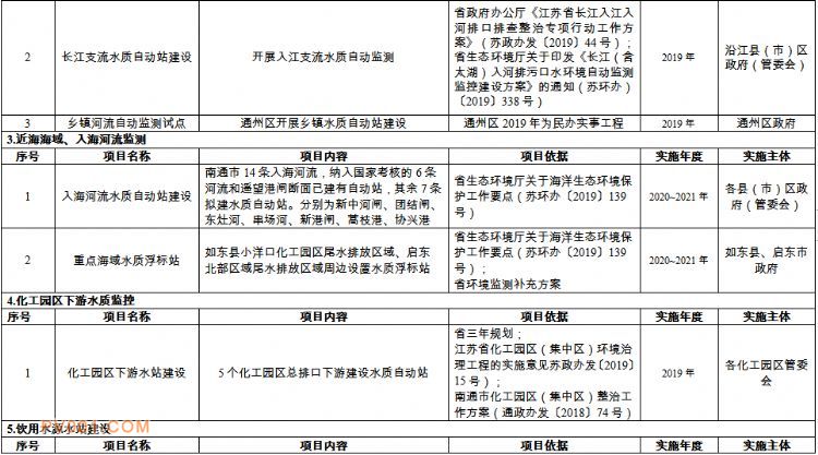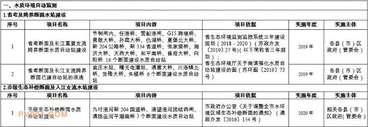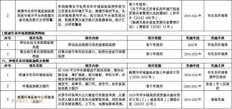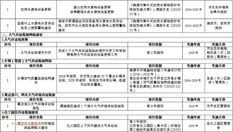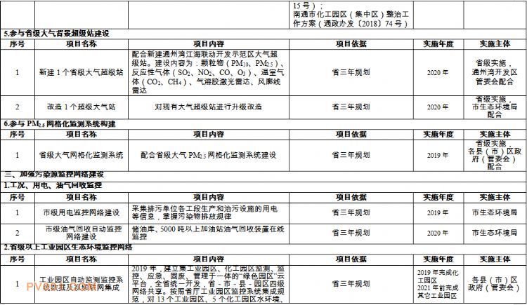 南通市生态环境监测监控系统三年建设规划重点工程项目表