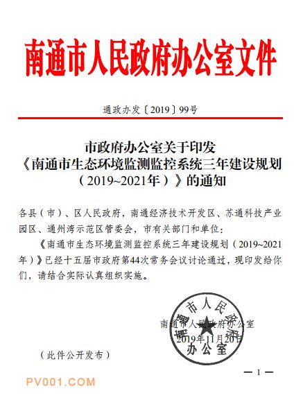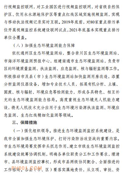 日前,南通市关于印发《南通市生态环境监测监控系统三年建设规划(2019~2021年)》的通知,详情如下: