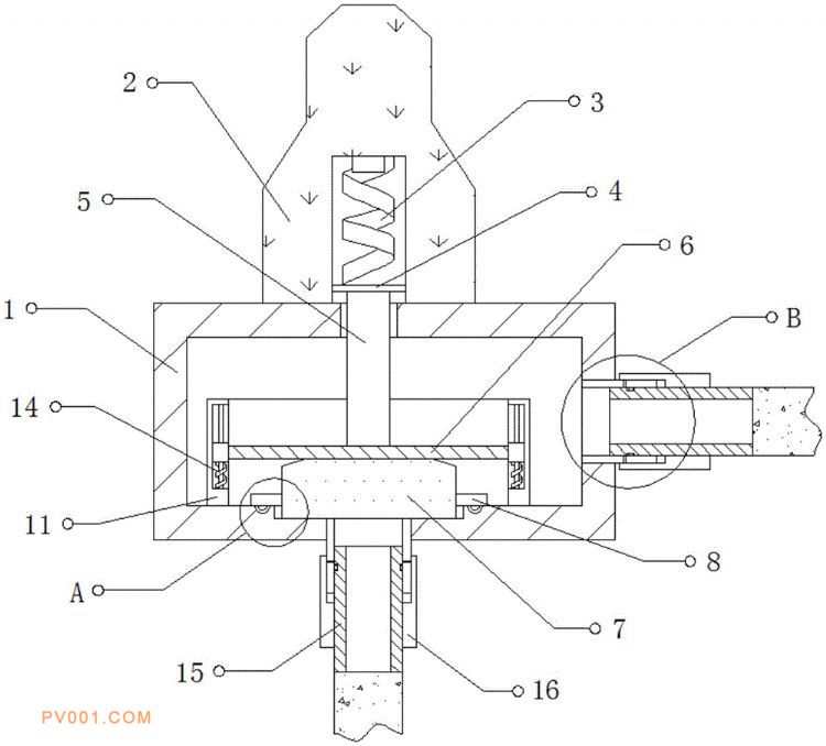 电磁阀,包括固定壳,所述固定壳的一侧和底部外壁分别固定有进液管和出液管,且固定壳的顶部设置有