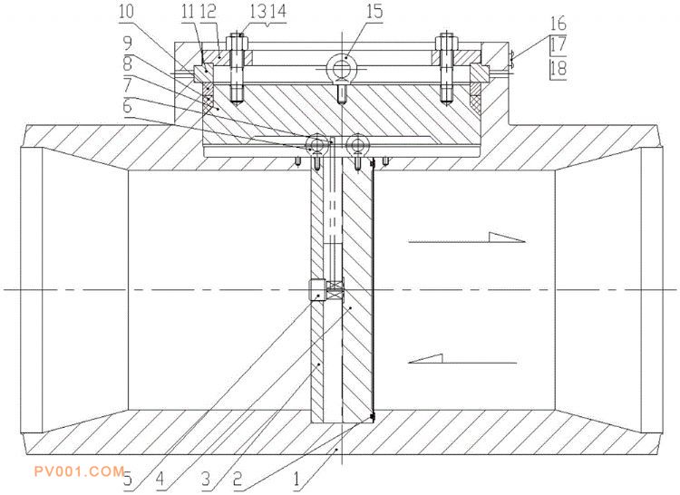 专利摘要:公开(公告)日:2019-11-26摘要:本实用新型公开一种堵阀,阀体内由左至右依次放置有纵向的支板和堵板,堵板与阀体的内壁之间设置有O型圈;支板的中心处与横向的螺杆的左端连接;支板和堵板之间设置有纵向的单头扳手,支板和堵板的上端分别设置有位于单头扳手左侧和右侧的第一吊环螺钉,阀体的上面设置有阀盖,阀盖与阀体之间设置有环形的密封圈,密封圈的上面设置有位于阀盖与阀体之间的环形的垫环,垫环的上面设置有环形的四开环,四开环上设置有支撑板,阀体内构成管道结构,阀体内设置有圆管状的导流套,导流套与所述管道结构形成偏心结构,导流套的上面设置有压板,其能减小阀体加工难度,提高加工效率,减小加工成本,减小体积和重量。