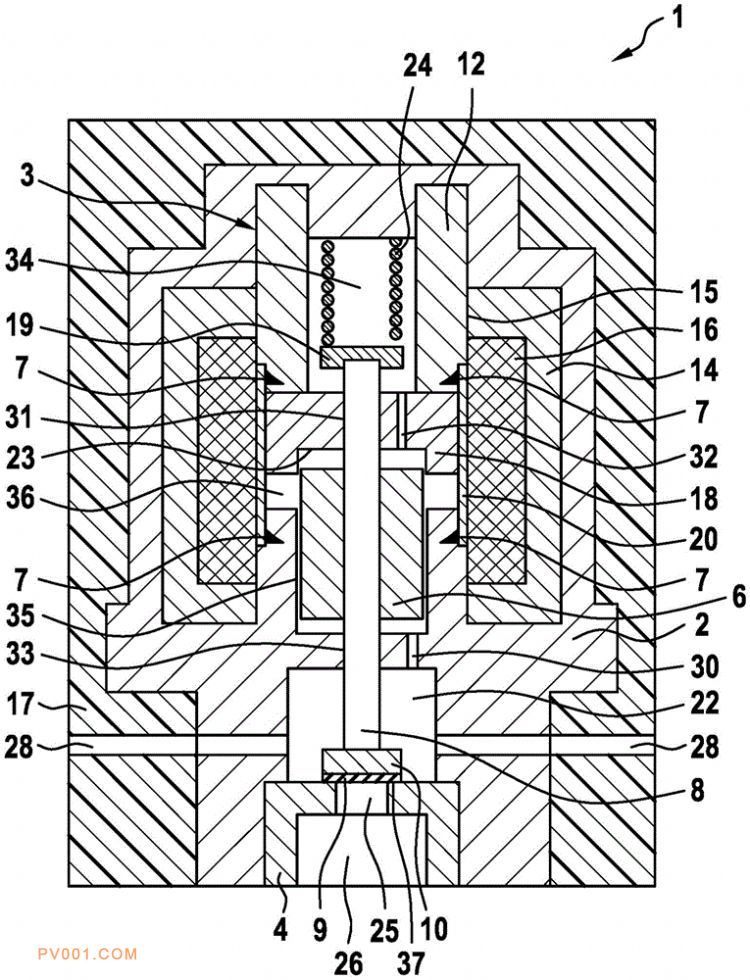 专利摘要:公开(公告)日:2019-11-26摘要:本发明涉及一种用于控制气态介质、尤其氢气的比例阀(1),其具有阀壳体(2),其中,在阀壳体(2)中构造有内室(3)。在内室(3)中布置有具有外极(14)和内极(15)的电磁线圈(16)。此外,内极(15)构造为两部分式并且包括第一内极元件(12)和第二内极元件(18)。
