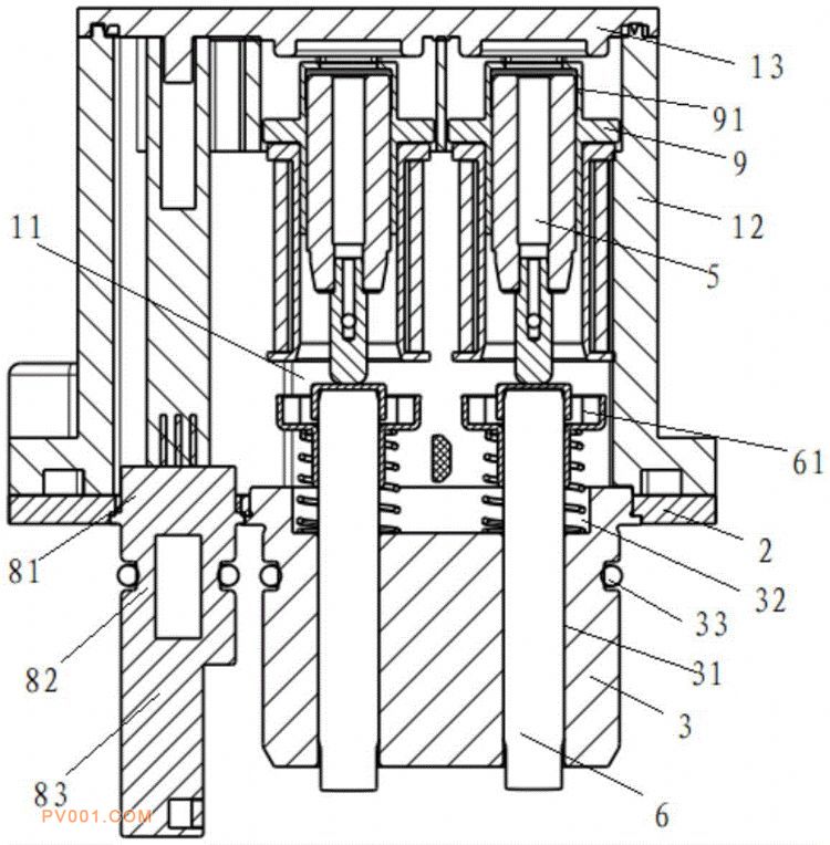 电磁阀阀销伸出时与凸轮发生撞击的情况。