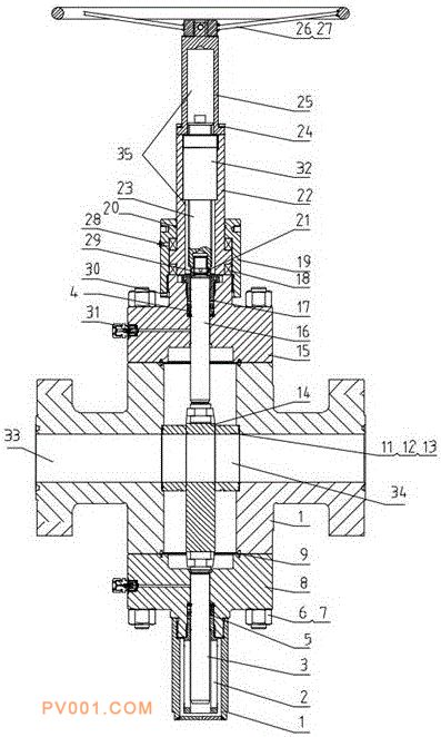 专利摘要:公开(公告)日:2019-11-26摘要:本实用新型公开了阀体技术领域的超高压耐腐蚀滚珠丝杠平板阀,包括阀体,阀体上设置有横向的流通孔,阀体内对称设置有两阀座,两阀座的中心均设置有阀座孔,两阀座孔与流通孔相连通,两阀座的轴线与流通孔的轴线重合,阀体的上下端均通过栽丝螺栓及螺母固定连接有上阀盖和下阀盖,阀体、上阀盖和下阀盖的中心均设置竖直通孔,三个竖直通孔的轴线重合,且三个竖直通孔相连通形成阀腔,阀腔内自上而下分别设置有依次连接的阀杆、阀板和下导杆,降低了该平板阀的开启和关闭力矩,缩短平板阀开关时间,有效防止了因螺纹连接失效引起的液体泄漏,显著提高了
