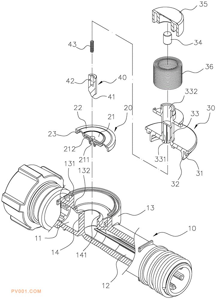 专利摘要:公开(公告)日:2019-11-26摘要:本实用新型公开一种园艺喷水器控制阀,其包括有:一园艺用管、一橡胶阀片、一盖体及一阀柱,该园艺用管于该阀管内置入有该橡胶阀片,让该橡胶阀片的固定环卡设于该园艺用管的环槽处,且该盖体盖合于该阀管而使定位环下压该橡胶阀片,同时该阀柱受到该圈状压缩弹簧的顶推,使该阀柱顶压于该橡胶阀片,且该盖体的凸环嵌入该阀管的连接环槽内,借此在未转动该定位环与该橡胶阀片的前提下,通过高周波粘合加工让该凸环与该连接环槽互相粘合固定,具有消除该橡胶阀片于组装时有因为扭转而影响其密封效果的情况,以兼具有增加组装良率与结合强度的实用性。