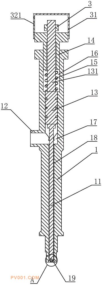 专利摘要:公开(公告)日:2019-11-26摘要:本实用新型涉及一种挤出机添加剂的液注针阀,应用在挤出机添加剂加注设备领域,其技术方案要点是:包括阀座、阀针、进料嘴、阀杆、限位套和拉伸弹簧,阀座内开设沿阀座高度方向从上向下依次分布的有第一沉槽、第二沉槽和通槽,阀针滑动在通槽内,阀针的一端设有截面为梯形的阀塞,另一端与阀杆连接,通槽槽壁设有与阀塞斜面相贴合的锥面,阀杆滑动在第二沉槽内,限位套的一端螺纹连接在第一沉槽内,拉伸弹簧位于第一沉槽内且两端分别与阀杆和限位套连接,进料嘴设置在阀座侧壁上并与第二沉槽连通;其优点是:减小了针阀在输入添加剂时物料进入阀座内,导致针阀被堵塞的可能。
