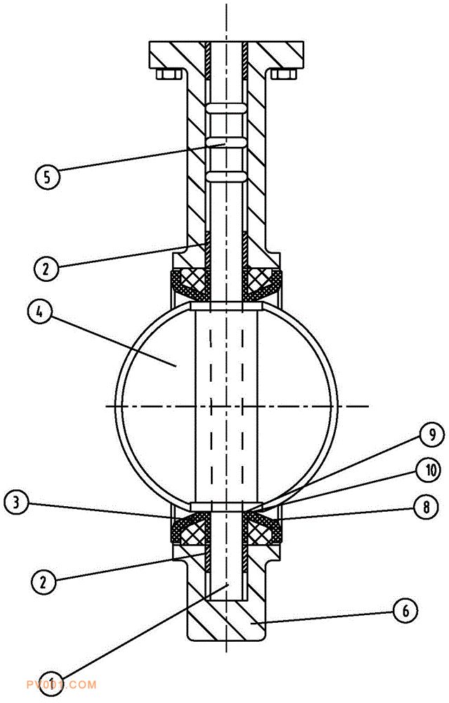 蝶阀。包括转轴、轴套、阀座、阀板、O型密封圈与阀体;所述阀板外径为半球面,半球面加工精度为IT16—IT8,表面粗糙度为0.63~5μm;阀板安装在转轴上,转轴通过轴套安装在阀体内部,阀板中心线与转轴轴线以及阀座中心线重合,O型密封圈位于阀体与转轴之间;阀座安装在阀体内部,阀座设有弧面,阀座端面压在阀板的密封面上,阀座端面与阀板密封面之间为过盈连接。本实用新型可减小操作力矩,使90°回转启闭迅速;达到完全密封,气体试验泄漏为零。