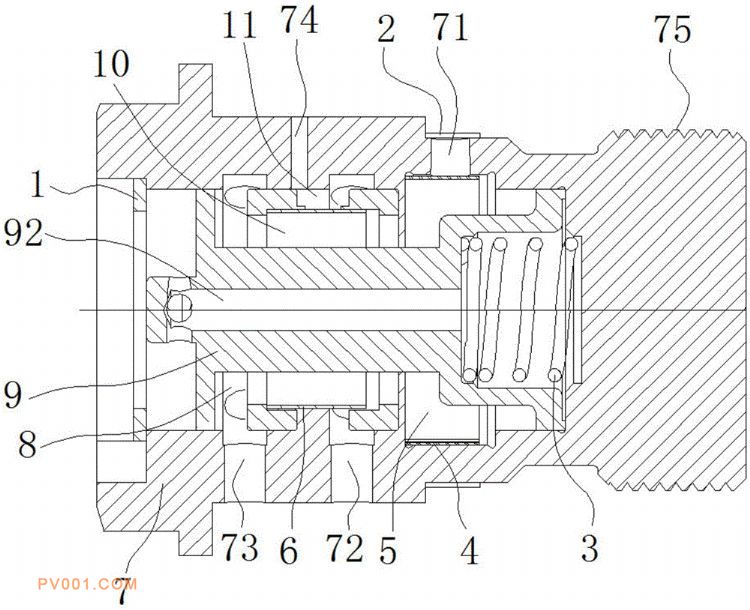 专利摘要:公开(公告)日:2019-11-26摘要:本实用新型提供一种中心滑阀结构,包括阀壳和柱塞,所述阀壳上分别开设第一工作连接口、第二工作连接口和工作排出口,所述柱塞与阀壳之间形成滑动配合结构,所述柱塞上形成连接通道,所述阀壳与柱塞之间分别形成第一环形缺口、第二环形缺口和第三环形缺口,所述第一环形缺口与第二环形缺口通过连接通道连通,所述第三环形缺口与工作排出口连通,在连接通道与第三环形缺口之间设置第二单向阀。本实用新型通过柱塞与阀壳之间的相对滑动,可使中心滑阀实现3种工作模式,以实现低介质压力需求;当本实用新型应用于可变气门正时调节系统中时,不仅能提高充油效率,还能提高气门正时调节速度。