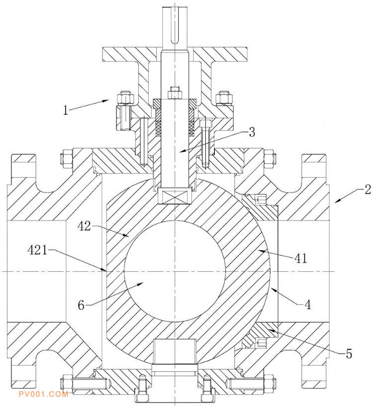 阀门技术领域,包括有支架和阀体,且阀体内转动设置有阀杆,阀杆连接有伸入至阀体内的阀芯,阀芯设置为带有空腔的偏心球体结构,阀芯包括有设置为球体结构的主体,主体的开口端一体成型有加强体,且加强体封闭主体的开口端。由主体和加强体一体成型而成的偏心球体结构带有空腔,空腔的设置有利于降低阀芯的整体重量,同时不影响加强体提高阀芯的结构强度;带有空腔的偏心球体结构相较于薄壁状的C型阀芯结构而言,带有空腔的偏心球体结构具有更好的抗冲击力和结构强度,有利于提高阀芯的整体结构强度,进而达到提高偏心