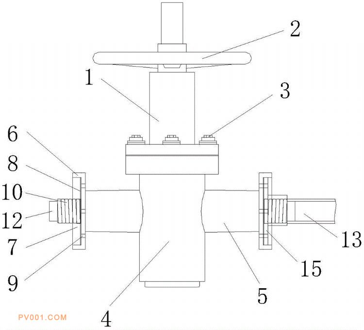 闸阀,阀体和外接管两者连接过程中采用了三种不同的连接方式相互配合进行稳定固定,在一定程度上减小了渗漏情况。