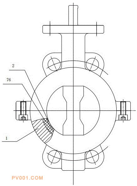 蝶阀在使用过程中,衬塑层容易磨损影响产品密封性能的问题。它包括阀体、阀座、阀板、上阀杆和下阀杆,所述的阀体上设有介质通道,所述的阀板外设有第一衬塑层,所述的阀板具有打开使得介质通道导通的第一位置和与阀座相配合关闭介质通道的第二位置,所述的阀体上设有用于顶压阀座使得阀座与第一衬塑层相紧贴的顶压机构。本实用新型的有益效果是,设置了顶压机构,使得顶压机构在密封时顶压阀座使得阀座与第一衬塑层相紧贴从而使得产品密封可靠,即使在工作过程中密封面有磨损,通过顶压机构使得阀座变形仍然能可靠的实现产品的密封,使得产品密封性能好,密封可靠。