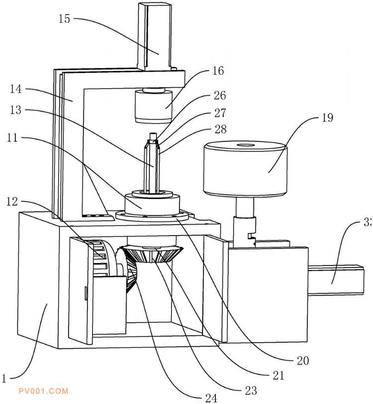 专利摘要:公开(公告)日:2019-11-26摘要:本实用新型公开了一种用于汽车阀片的圆周抛光设备,涉及阀片加工设备,旨在解决现有技术中缺乏一种针对阀片圆周面的抛光设备,其技术方案要点是:一种用于汽车阀片的圆周抛光设备,包括工作台,工作台转动连接有旋转座,工作台设置有减速电机,旋转座的中心设置有插接柱;工作台固定设置有弯臂,弯臂固定设置有下压气缸,下压气缸同轴转动连接有下压件,下压件配合旋转座夹紧多个阀片;工作台滑移连接有进给座,进给座固定设置有交流电机,交流电机的输出轴同轴固定有抛光轮。本实用新型的一种用于汽车阀片的圆周抛光设备,利用阀片圆周面与抛光轮的相对摩擦,实现对多个阀片圆周面的抛光,同时,采用批量式抛光,有效提高了抛光的效率。