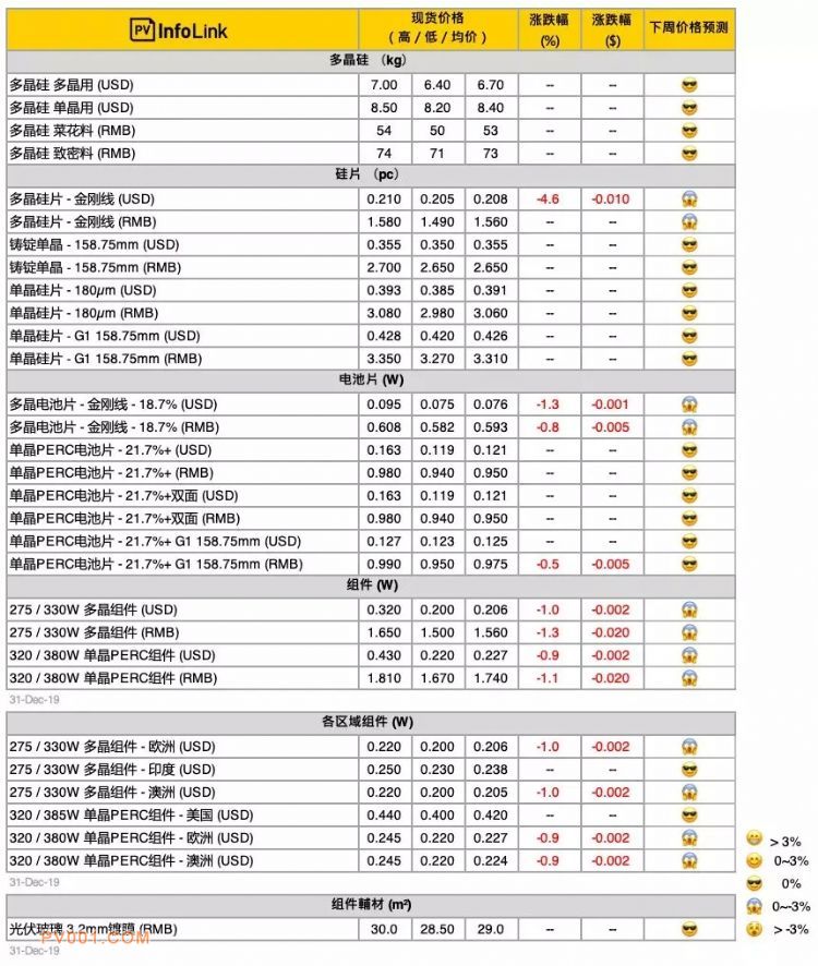 PV InfoLink的现货价格主参考超过100家厂商之资讯。主要取市场上最常成交的“众数”资料作为均价(并非加权平均值)、但每周根据市场氛围略有微调。