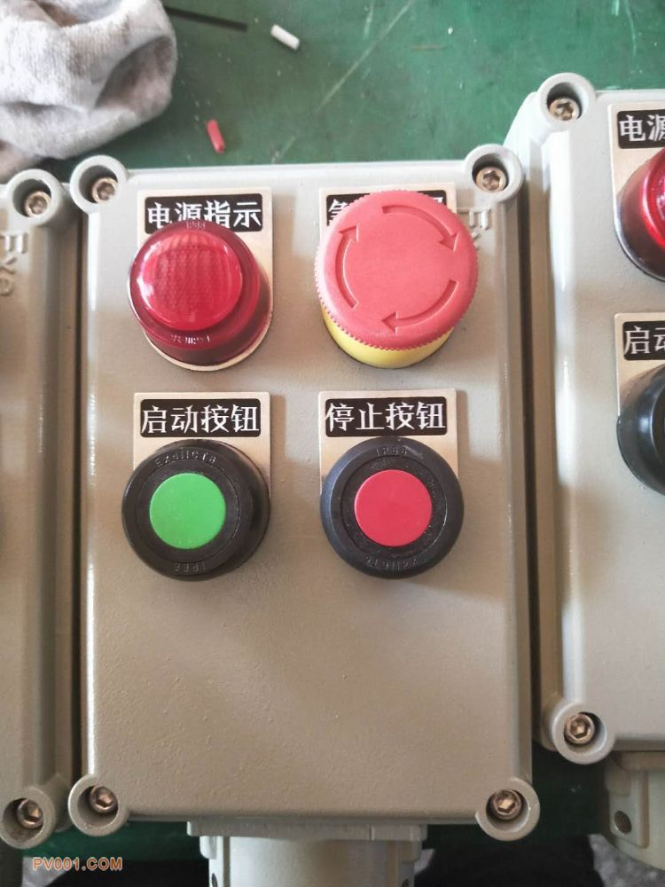 现场远程防爆操作按钮箱1、铸铝合金外壳压铸或钢板焊接成型,表面喷塑。