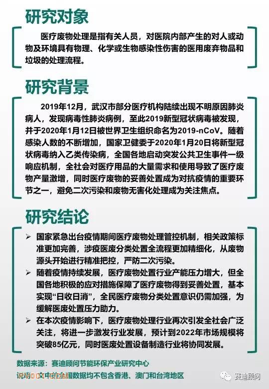 近日获悉,赛迪顾问节能环保研究中心发布《疫情期间丢弃的口罩都去哪了? 一文看懂医疗废物处理行业》,针对当前疫情,做了相关研究,医废处理行业再次引起社会广泛关注,全文如下: