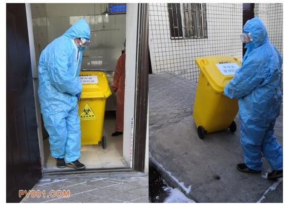 收集人员对医疗废物的种类、数量和重量进行核实后,将其转移至专用转运车上。转移疫情医疗废物时,尤其慎重,轻拿轻放在车厢靠门处,方便第一时间焚烧处置。