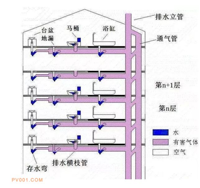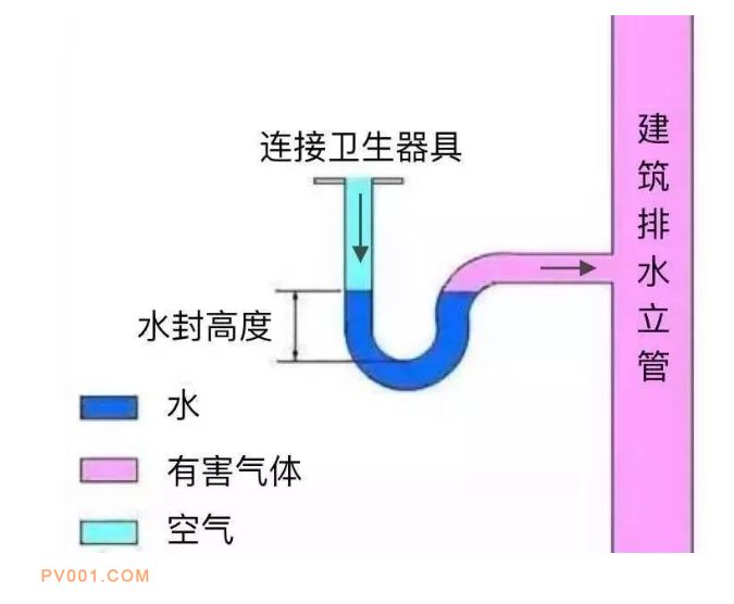 另一方面是因为,洗手盆、马桶等处的排水支道上设计了U形存水弯,此处存满的水形成了水封,阻止排水立管中的有害气体和臭味溢出来。