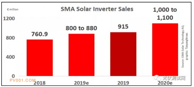 受此业绩刺激,SMA决定将2020年销售额目标设定为11亿欧元,假设2020年逆变器单价下滑15%(SMA自己估计价格下降幅度要高出8-10%),SMA的逆变器销售量必须超过13.9GW,增长20%以上。