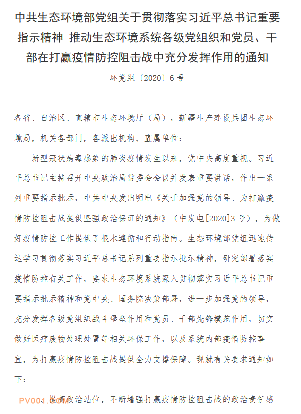 原标题:生态环境部应对新冠疫情政策汇编(截至2020年2月15日)