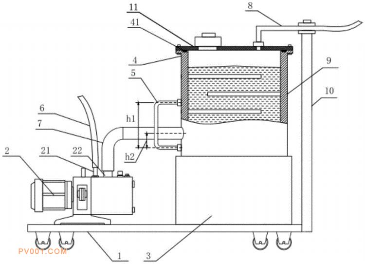 真空泵洗气装置,属于洗气装置领域,包括移动平板车,