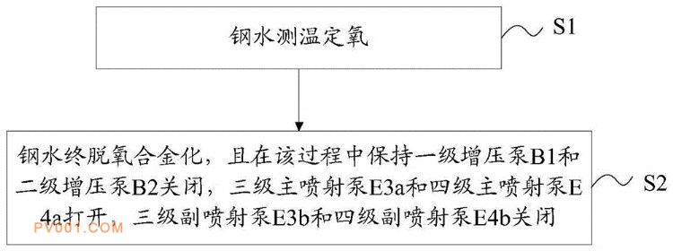 增压泵关闭,所述三级主喷射泵和所述四级主喷射泵打开,所述三级副喷射泵和所述四级副喷射泵关闭。本发明无需更换喷射泵,因而基本不增加新的投资,通过优化RH