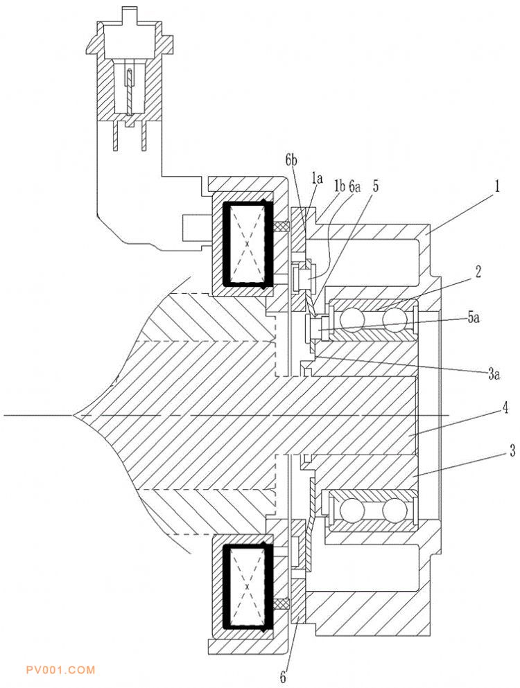 水泵轴(4),在带轮内环(3)一端依次设有簧片(5)、第一吸盘(6)以及第二吸盘(7),在第二吸盘(7)上设有电磁线圈总成(8)。本发明结构简单、使用方便、制造成本低廉,可以快速的断开水泵动力源。