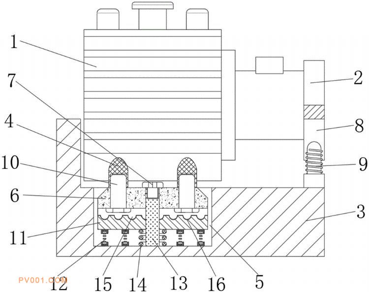 真空泵安装连接机构,包括真空泵,真空泵的右侧设置有连接管头,真空泵的下端面设置有前后对称的四个连接杆,连接杆的下端连接有底板,底板插接在底座的上端面安装槽内,底板的下端面前后端设置有线性分布的若干圆弧凸起,有益效果为:本实用新型通过在连接管头一端设置半圆形的支架,利用第一弹簧实现对连接管头上下振动的缓冲,进而防止管头振动造成连接管的脱落;通过在真空泵的下端设置底板和缓冲板的配合,利用多个弹簧的配合,实现缓冲,利用圆弧凸起和半圆凹槽之间的配合卡接,提高左右位置振动的挤压面积,进而减小挤压压强,防止底板外壁和真空泵安装位置移动。