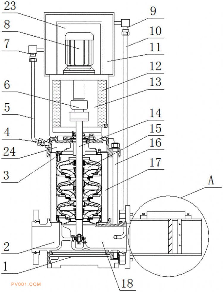 离心泵技术领域,且公开了一种低噪音不锈钢轻型立式多级