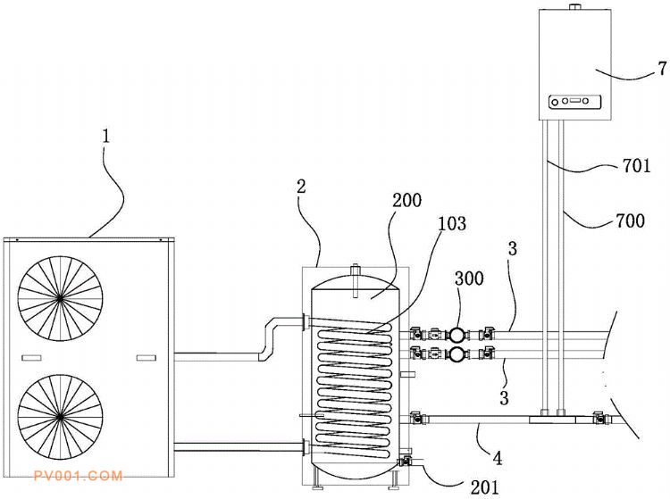 专利摘要:公开(公告)日:2020-05-15摘要:本实用新型公开了一种基于风冷热泵的储能装置及其应用的供热供冷系统,它包括风冷热泵,具有连接在制热制冷回路中的水热交换器;蓄能水箱,其内设有储水的内腔,所述蓄能水箱上连通有至少一个与末端装置进水端相连通的进水管,且蓄能水箱上连通有与末端装置排水端相连通的回水管;所述的水热交换器设置在蓄能水箱的内腔内。该基于风冷热泵的储能装置及其应用的供热供冷系统结构简单、成本低,能耗低、热交换效率高,且使用寿命长。