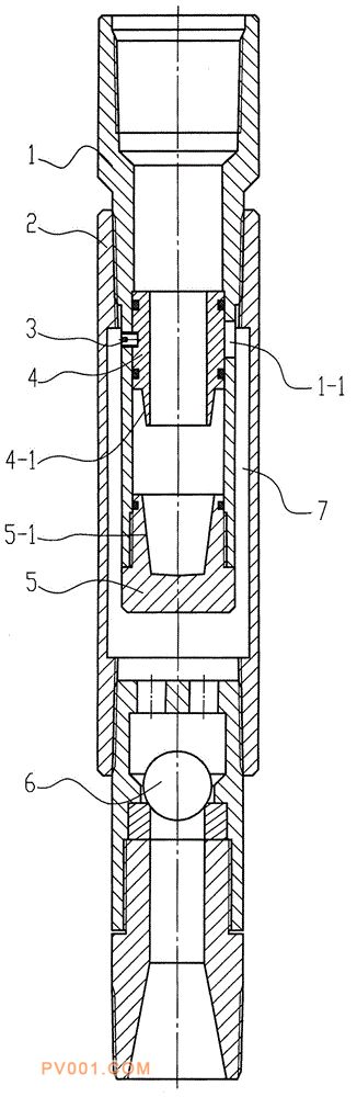油泵活塞推落到联通接头的底部,联通接头的底部封闭,联通接头的上部有与抽油泵泵筒连接的螺纹,连接管的上部与联通接头连接,连接点处于所述的联通槽之上,连接管的下部是单流阀,联通接头的外壁与连接管的内部之间有环流通道,安装在抽油泵的泵筒之下,下井时井液不会进入泵内,管柱上连接的销钉类工具的内部压力不会高于外部压力,下井时销钉类工具上的销钉不会被剪断,保证抽油管柱下井成功。