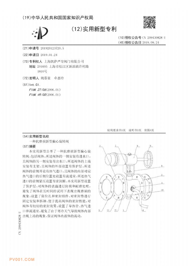 【专利】201920123720.5一种抗磨损新型偏心旋转阀