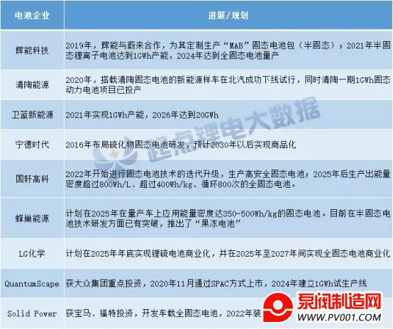 因此,不仅有宁德时代、LG化学、比亚迪、国轩等龙头电池企业布局,还有如辉能科技、清陶能源、卫蓝新能源等先行者。