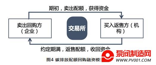 碳排放配额回购融资是指控排企业或其它配额持有者向碳排放权交易市场其它机构交易参与人出售配额,并约定在一定期限后按照约定价格回购所售配额,从而获得短期资金融通。深圳碳排放权交易所于2015-2016年度推出跨境碳资产回购融资业务,以碳配额为融资标的物,引进境外低成本资金助推深圳节能低碳工作。2016年3月19日,深圳妈湾电力有限公司和BP Energy Asia Pte Ltd(简称“BP”)在交易所的协助下完成了国内首单跨境碳资产回购交易业务,妈湾以400万吨配额获得了BP上亿人民币的融资资金。碳回购由卖出回购方(主要是配额所有者)和买入返购方(主要是金融机构和碳资产管理公司等)参与,融资期限灵活,仅使用碳配额作为交易标的,对卖方企业其他资质没有过高要求,拓宽了企业的融资渠道。