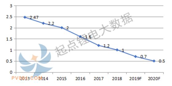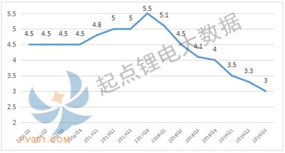 湿法隔膜价格下滑幅度较大,从年初的市场均价1.7元/平米,下降到三季度的1.4元/平米,预计四季度将跌至1.3元/平米。干法方面同样受到大环境影响,价格跟随下滑已跌至1元/平米以下。