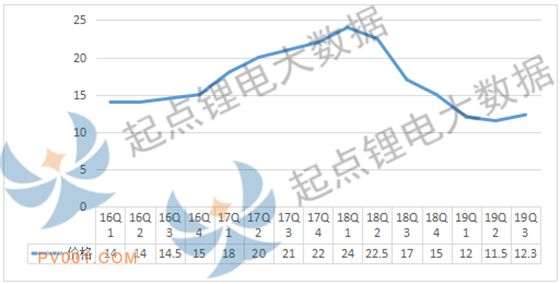 2019年三季度,受钴金属价格上涨影响,钴酸锂价格跟随小幅上涨,目前市场均价已到20万/吨。