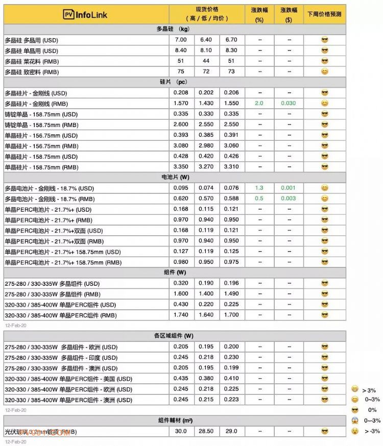 PV InfoLink的现货价格主参考超过100家厂商之资讯。主要取市场上最常成交的“众数”资料作为均价(并非加权平均值)、但每周根据市场氛围略有微调