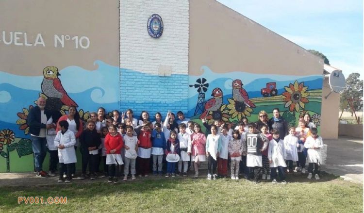 ↑金风科技阿根廷团队在米拉马尔第十乡村小学开展科学小活动