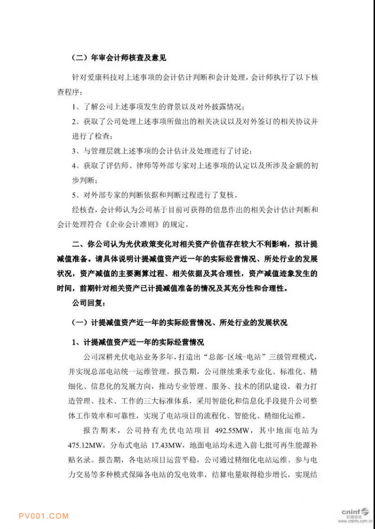 在回复复深交所“请具体说明计提减值资产近一年的实际经营情况、所处行业的发展状况,资产减值的主要测算过程、相关依据及其合理性,资产减值迹象发生的时间,前期针对相关资产已计提减值准备的情况及其充分性和合理性”这一问询时,爱康科技的系列答复中回复了光伏行业的发展状况,其中爱康科技答复:
