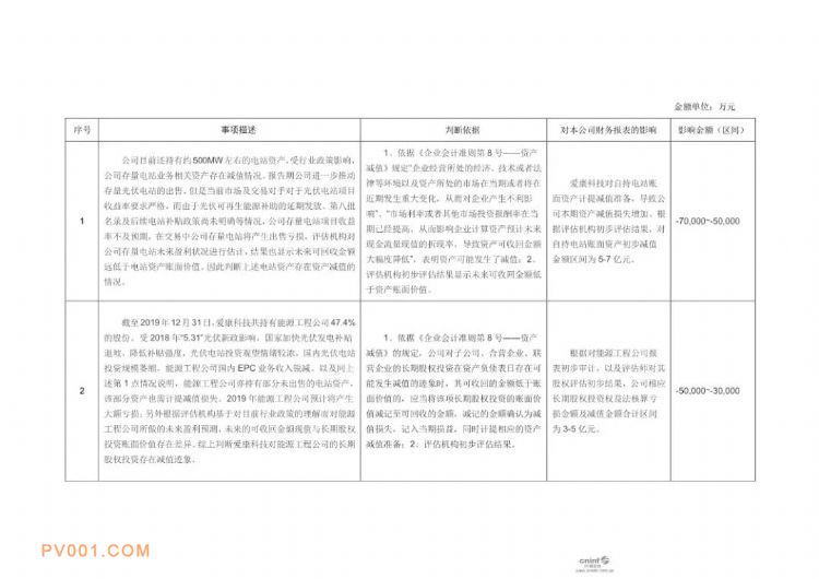 在问询函的系列问题中,深交所要求爱康科技以列表形式补充披露各因素对全年业绩的预计影响金额、涉及事项及产生亏损原因,并说明确认依据及合理性。