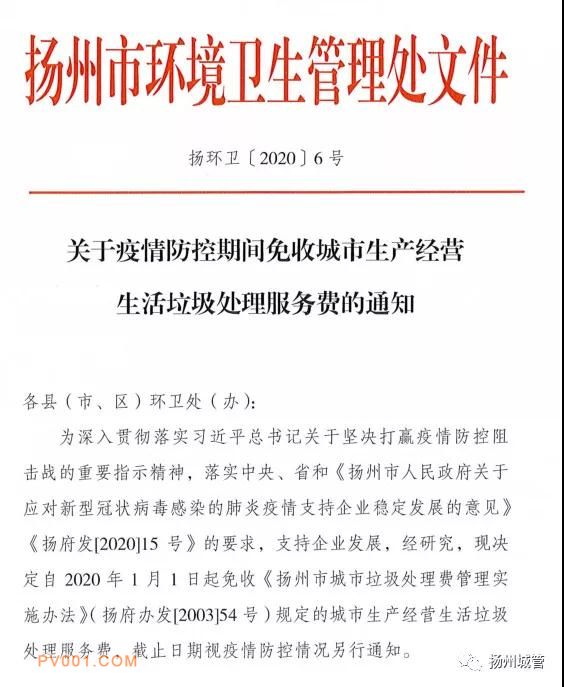 原标题:疫期减负:扬州环卫处发文 免收一项服务费