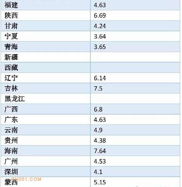 目前,我国已经核准了省级电网(除西藏外)、跨省跨区的输配电价,具体如下表。